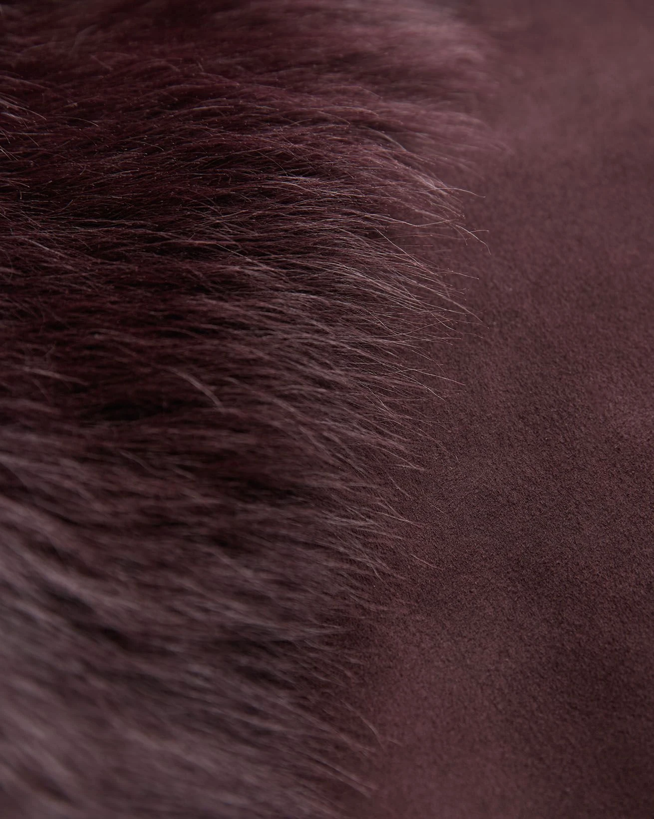 Crafted in rich shearling with a velvety Toscana trim at the front, it secures with simple hook fastening to keep the details minimal.