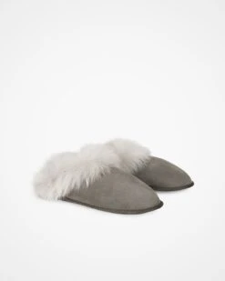 Expertly crafted right here in Newquay, Cornwall, this sublimely comfy slipper is shaped in shearling, trimmed with piping around the edge of the sole and adorned with a bouncy pom at the toe in a tonal hue. The super-soft sole offers gentle cushioning underfoot and a small loop at the heel helps you slip them on and off with ease.Â
