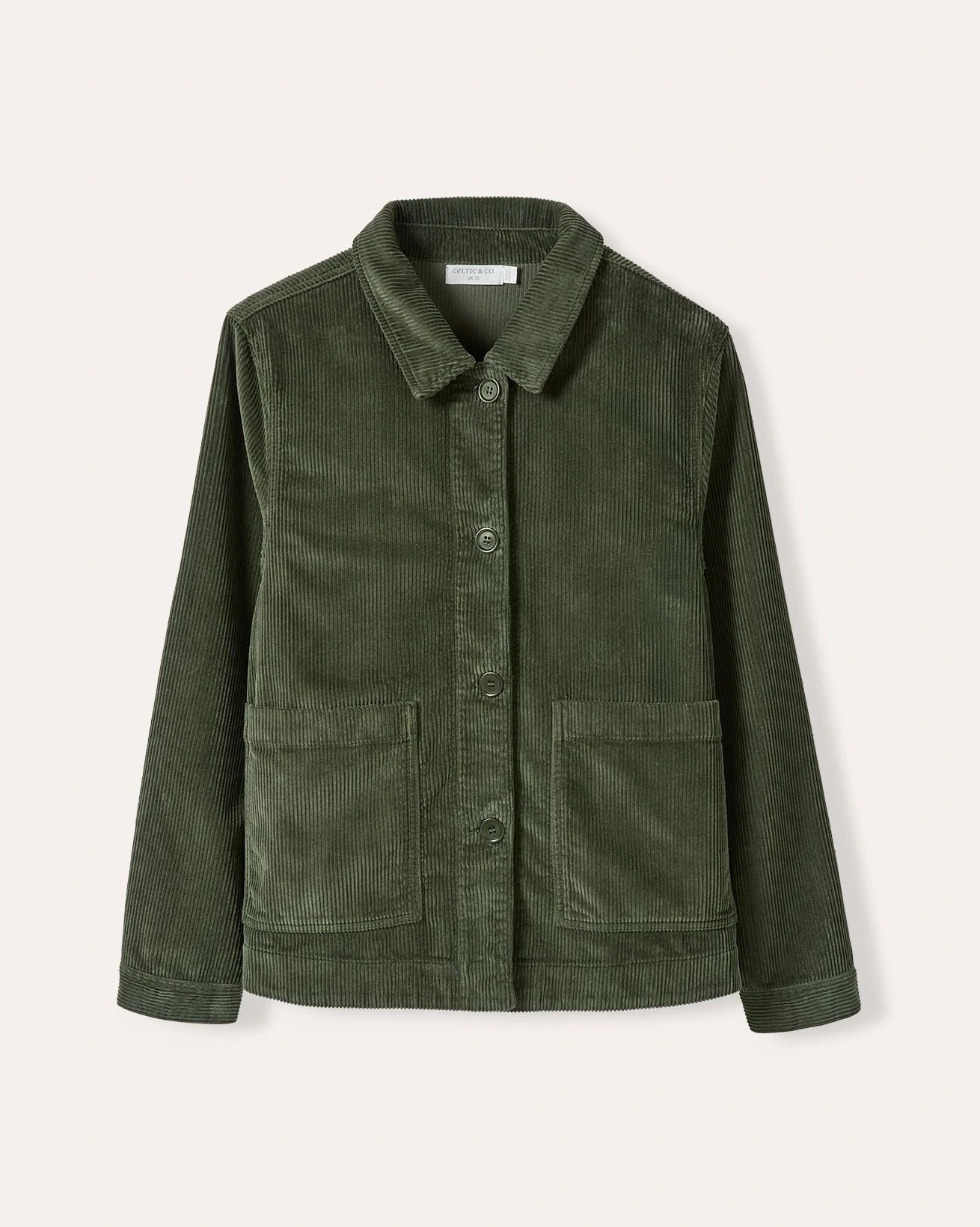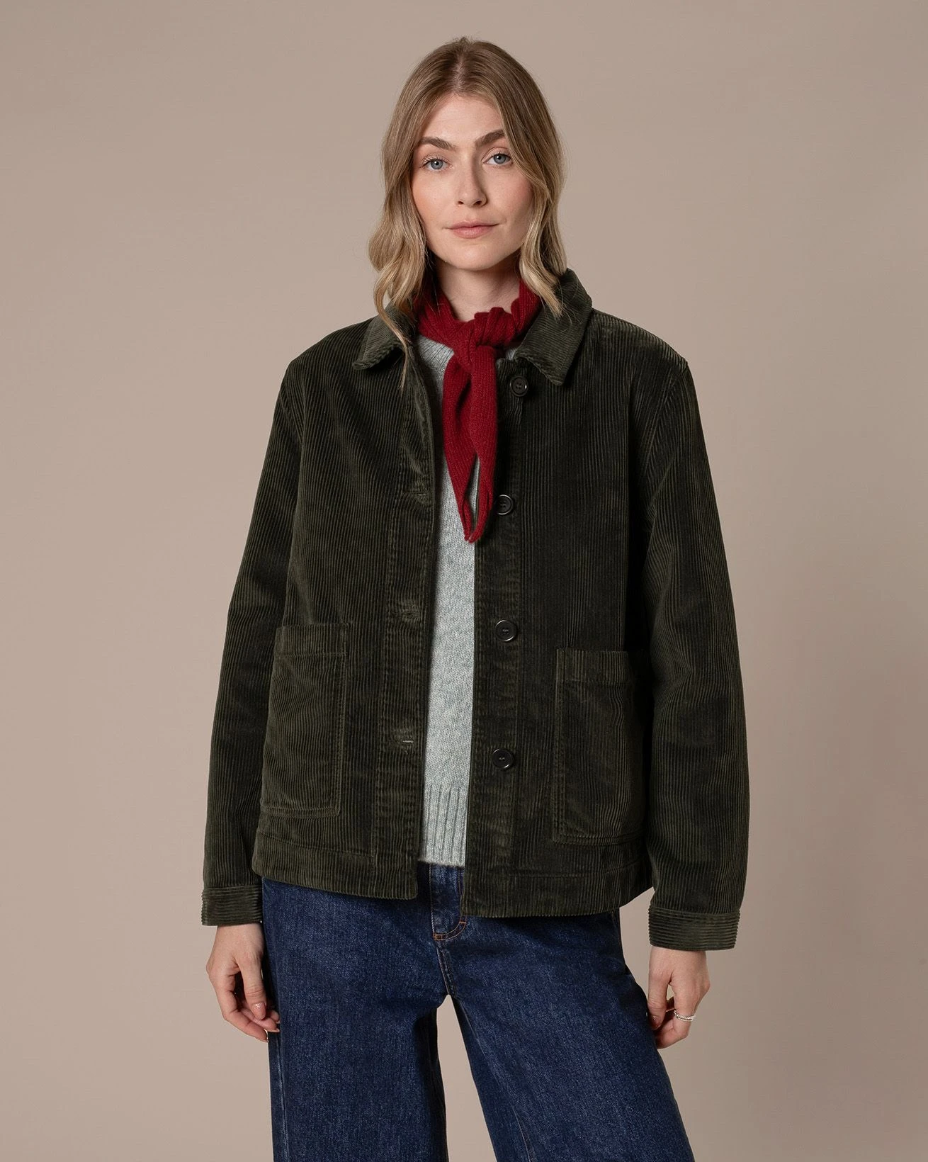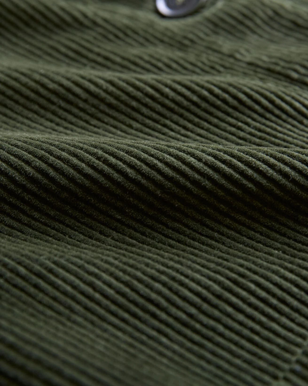The Corduroy Shacket features a collared neckline and easy fit workman style. Made from cotton blended with recycled pre-consumer cotton, it is unlined and finished with corozo buttons. Crafted in Portugal for durable, casual wear.
