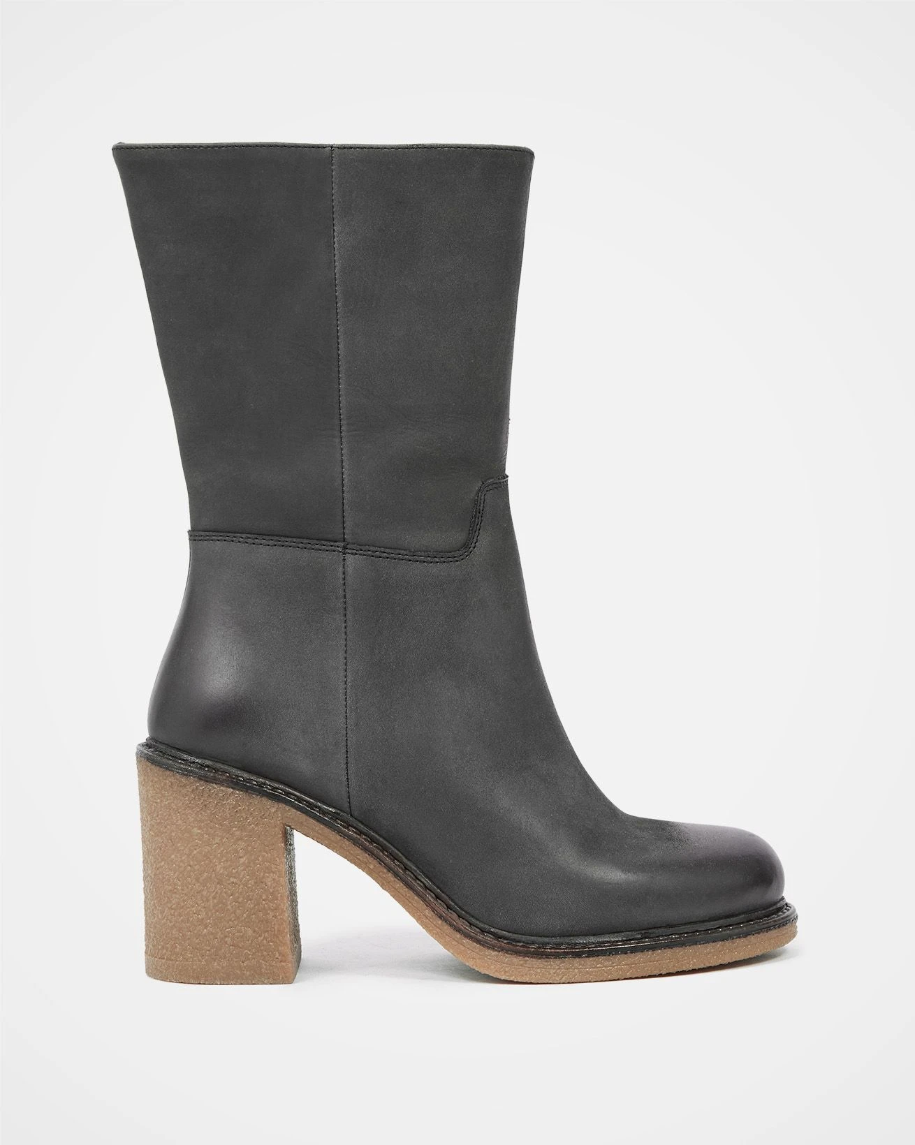 Crafted with a nubuck upper and leather lining, these boots ensure both quality and comfort. With a crepe rubber sole and block heel, they offer simplicity of style, complemented by a convenient zip opening for ease of wear.