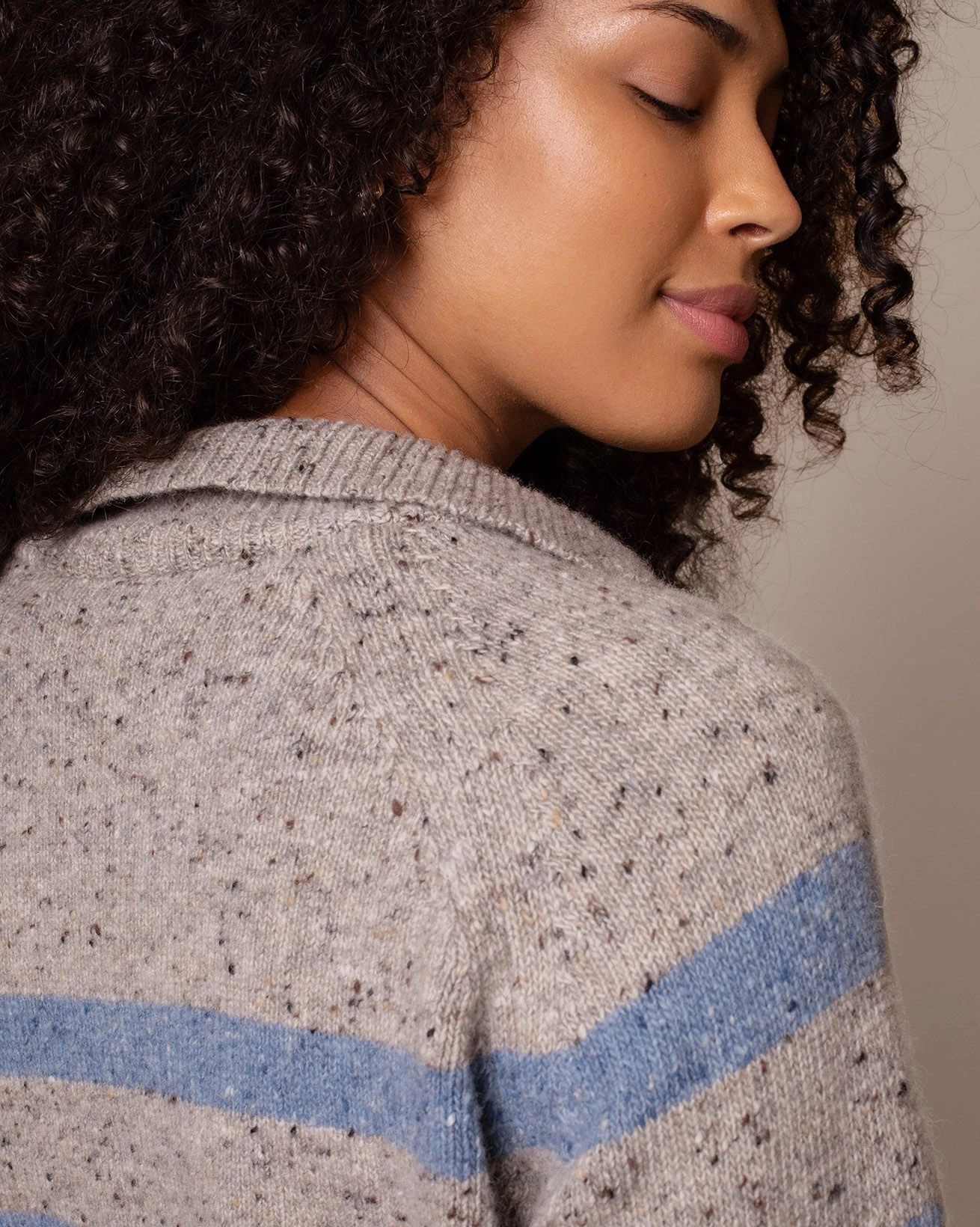 Crafted in Donegal wool with flecked yarns, this striped polo sweater features a notch neck collar and classic Breton stripe. Designed with a relaxed fit for easy layering.