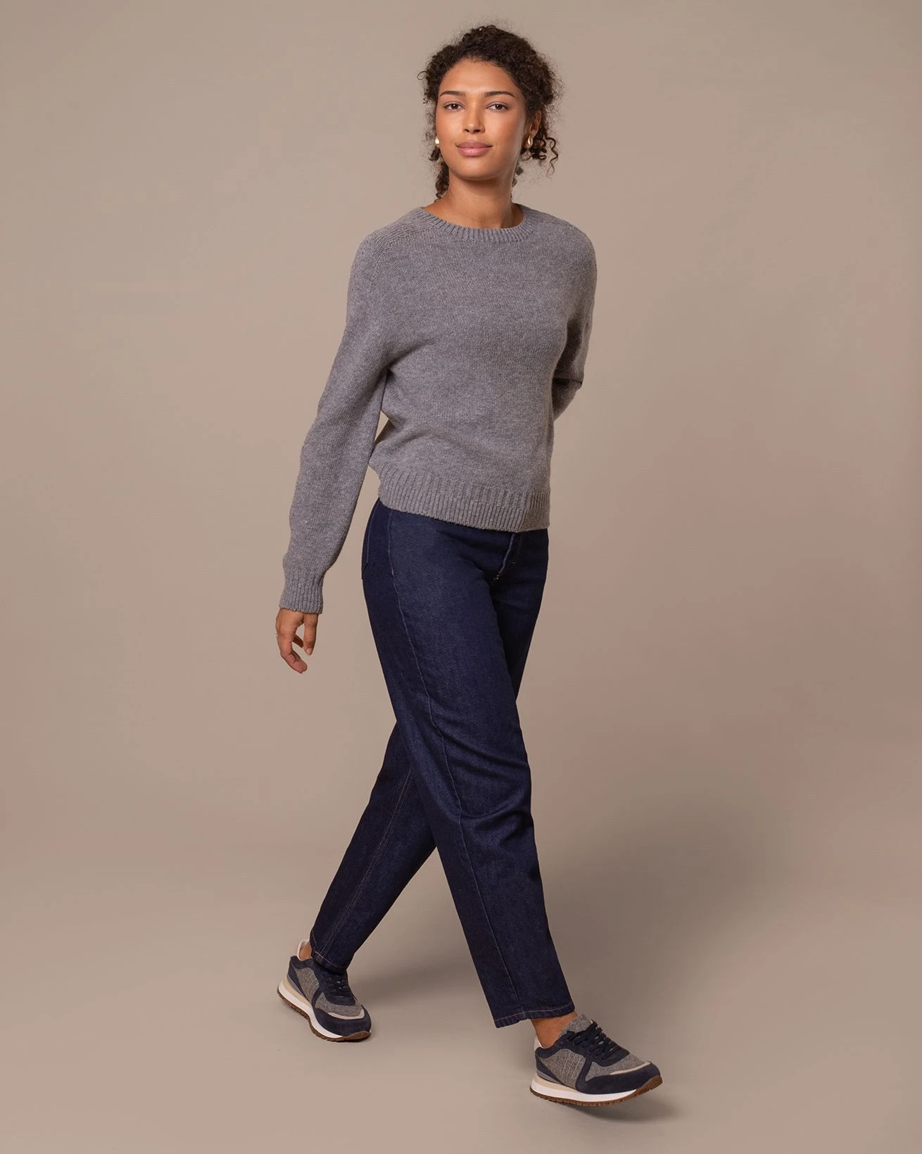 Made in Britain from supersoft wool, this sweater features a crew neck, saddle shoulder design, and a boxy fit. Gansey-inspired detailing at the hem and sleeves adds subtle texture, making it an easy-to-style essential with refined character.