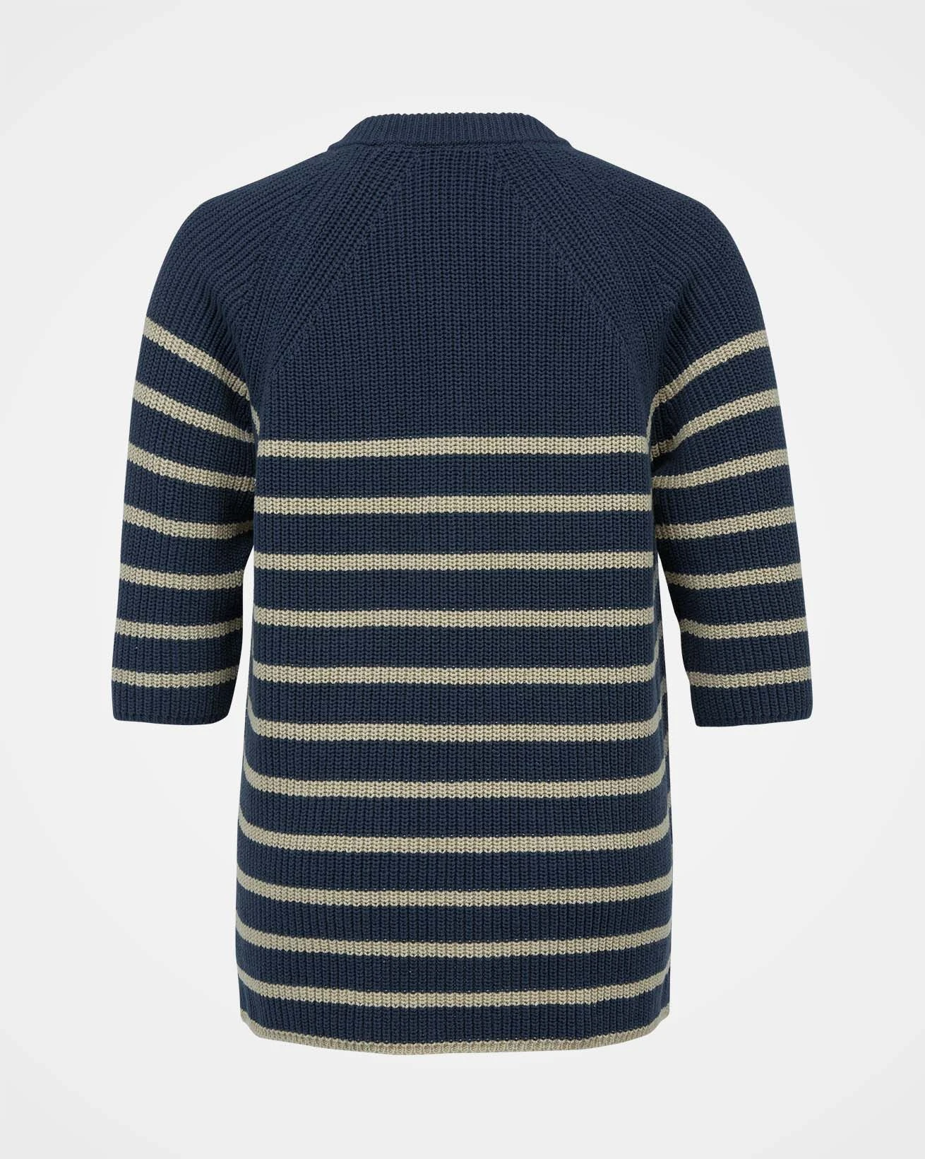 This versatile half sleeve sweater is made from summery yarn, knitted in a half cardigan stitch to add substance and drape to the shape and style. Featuring a crew neckline and a side splits at the hem, this has a modern and clean look with classic Breton striping.