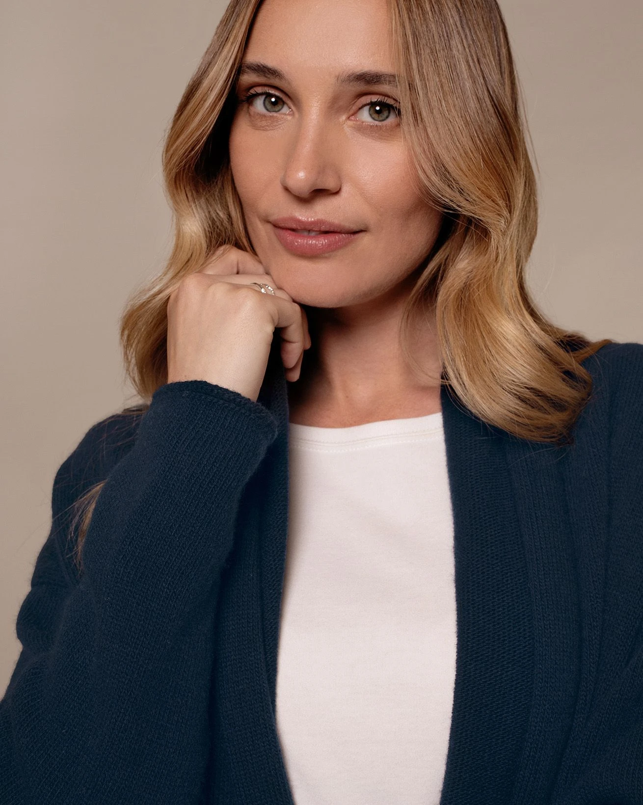 Crafted in pure lambswool, this shawl collar cardigan offers a relaxed, slouchy fit with an edge-to-edge front. The collar detail continues seamlessly to the hem, while integral front pockets add practicality. Designed to sit at the top of the thigh for easy layering.