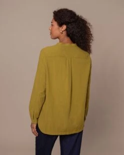 This certified cotton and Euroflax linen blend features a slubbed, irregular yarn with a mid to chunkier weight. The texture adds dimension, providing a sturdy, breathable material with a naturally relaxed feel and excellent resilience for versatile wear.