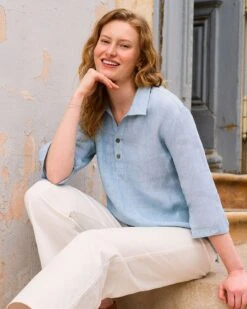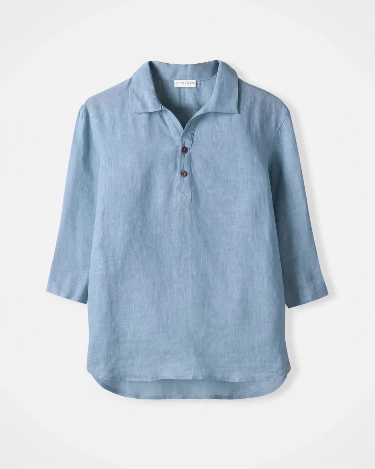 Our Linen Polo-Style Shirt is crafted in Euroflax linen with a garment-dyed and washed finish, providing a softer, tumbled look. It features a polo collar, a placket fastened with coconut buttons and three-quarter-length sleeves with a plain cuff. A curved hem, slightly longer at the back for coverage, helps create a flattering silhouette. Elevate your style with this timeless addition to your wardrobe.