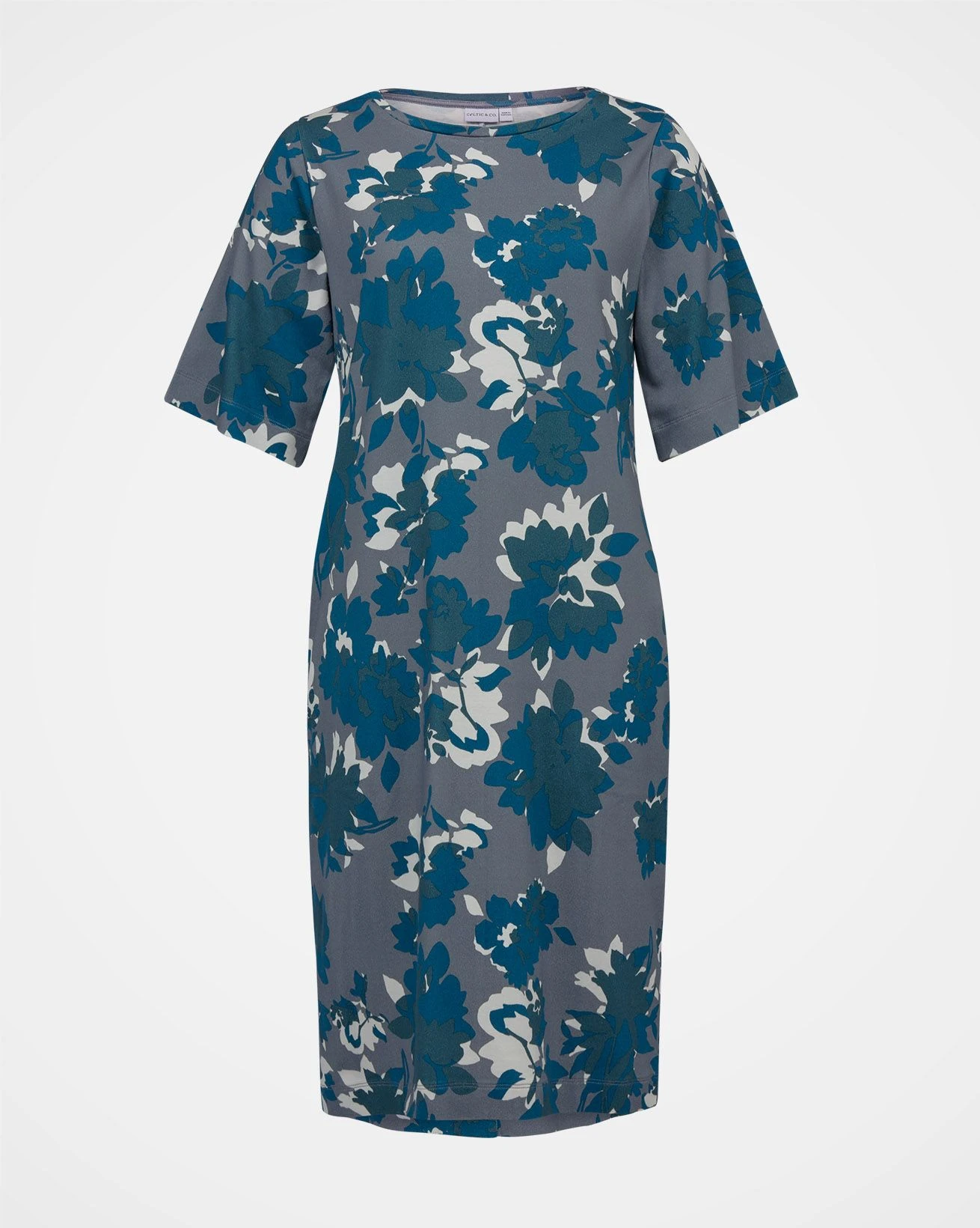This knee length, straight fit t-shirt dress is easy to wear, effortless to style and extremely comfortable. The half length, flared sleeves are very flattering and add extra coverage. Featuring a crew neckline and side pockets, this dress was designed to be lived in. Wear with sneakers in town and bare feet at the beach.