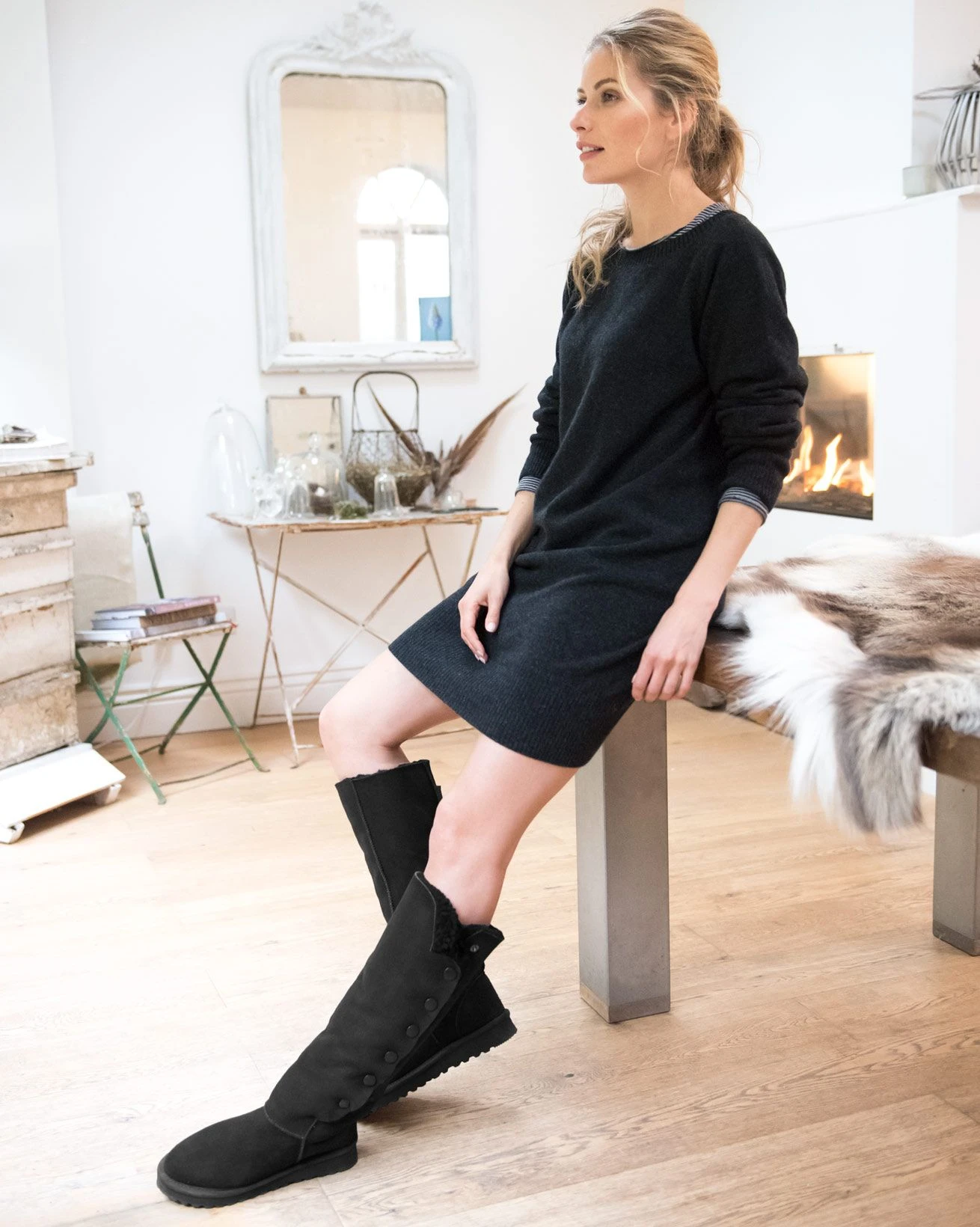 Injecting a little extra attitude into a long-standing favourite, our popper boots offer two chic looks in one super-cosy package. Hand crafted in Cornwall from 100% British shearling with double-stitched construction, these boots can be ordered in a calf or knee length.