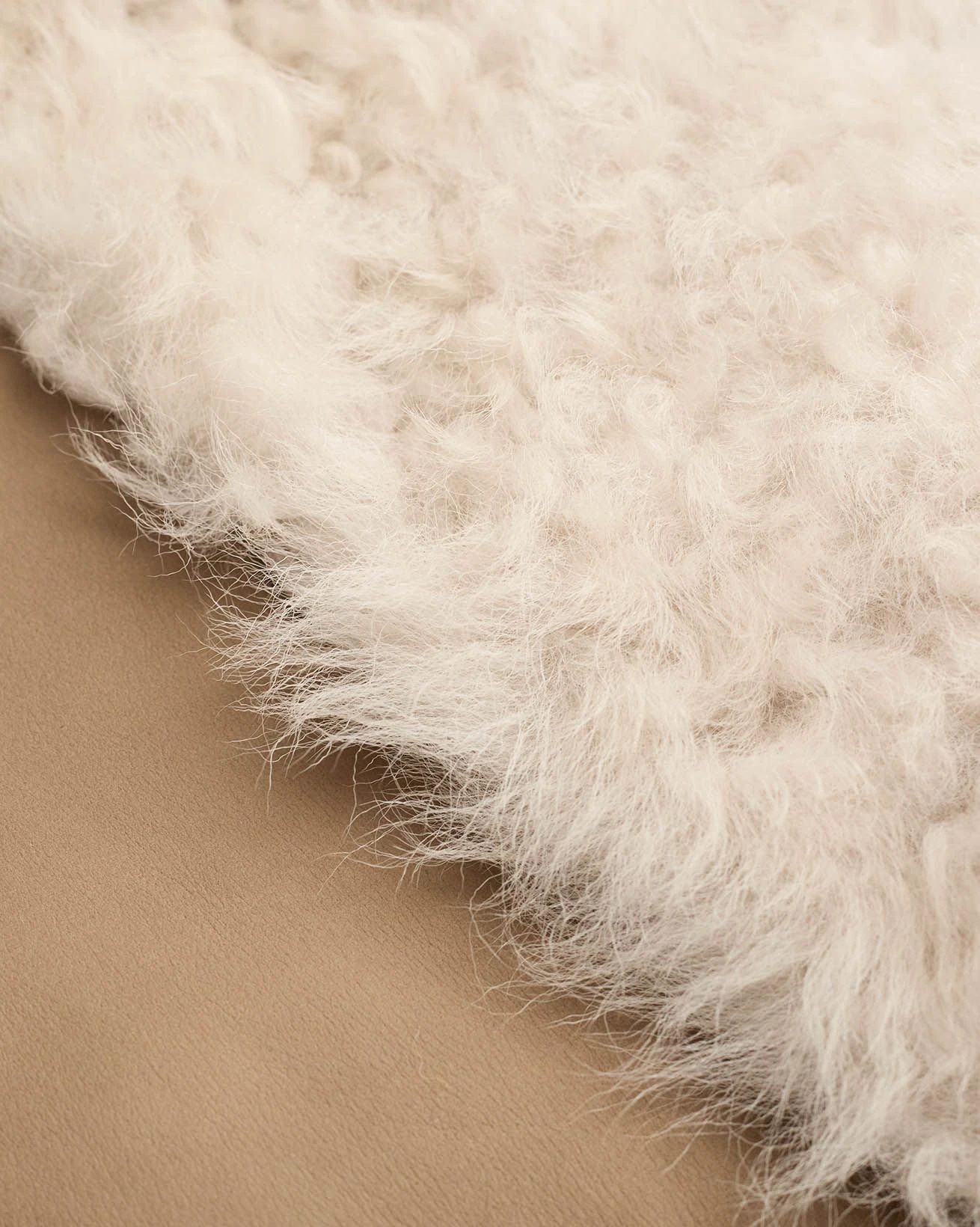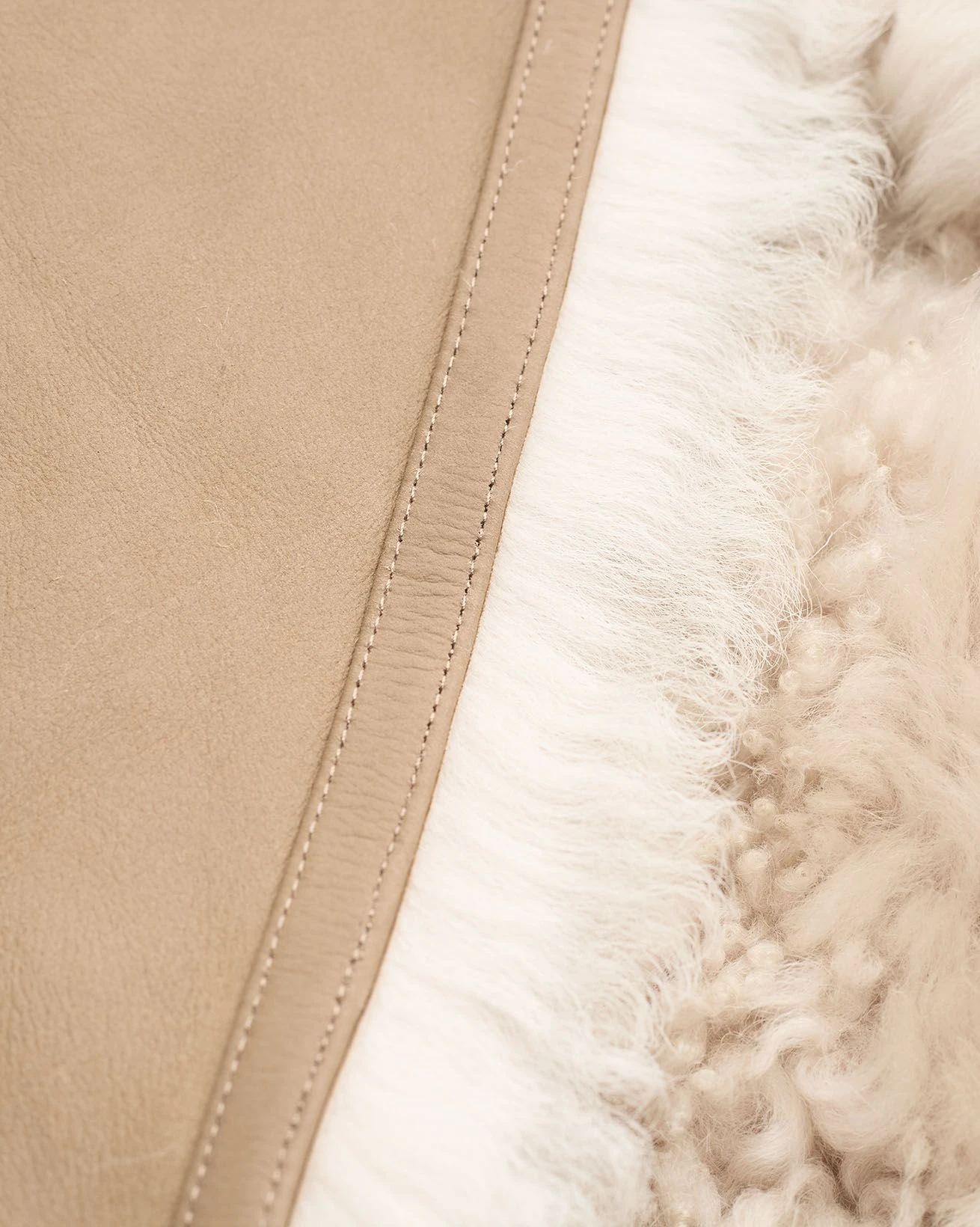 This Toscana Sheepskin comes from a specific breed of Spanish sheep and is renowned for its finest and most luxurious long wool. This pinnacle of sheepskins offers incredible insulation. The underside of the skin can be finished in suede, nappa, nubuck, or antiqued and tumbled looks, allowing for infinite versatility. As a natural product, variances in color and texture are to be expected, adding to its unique charm.