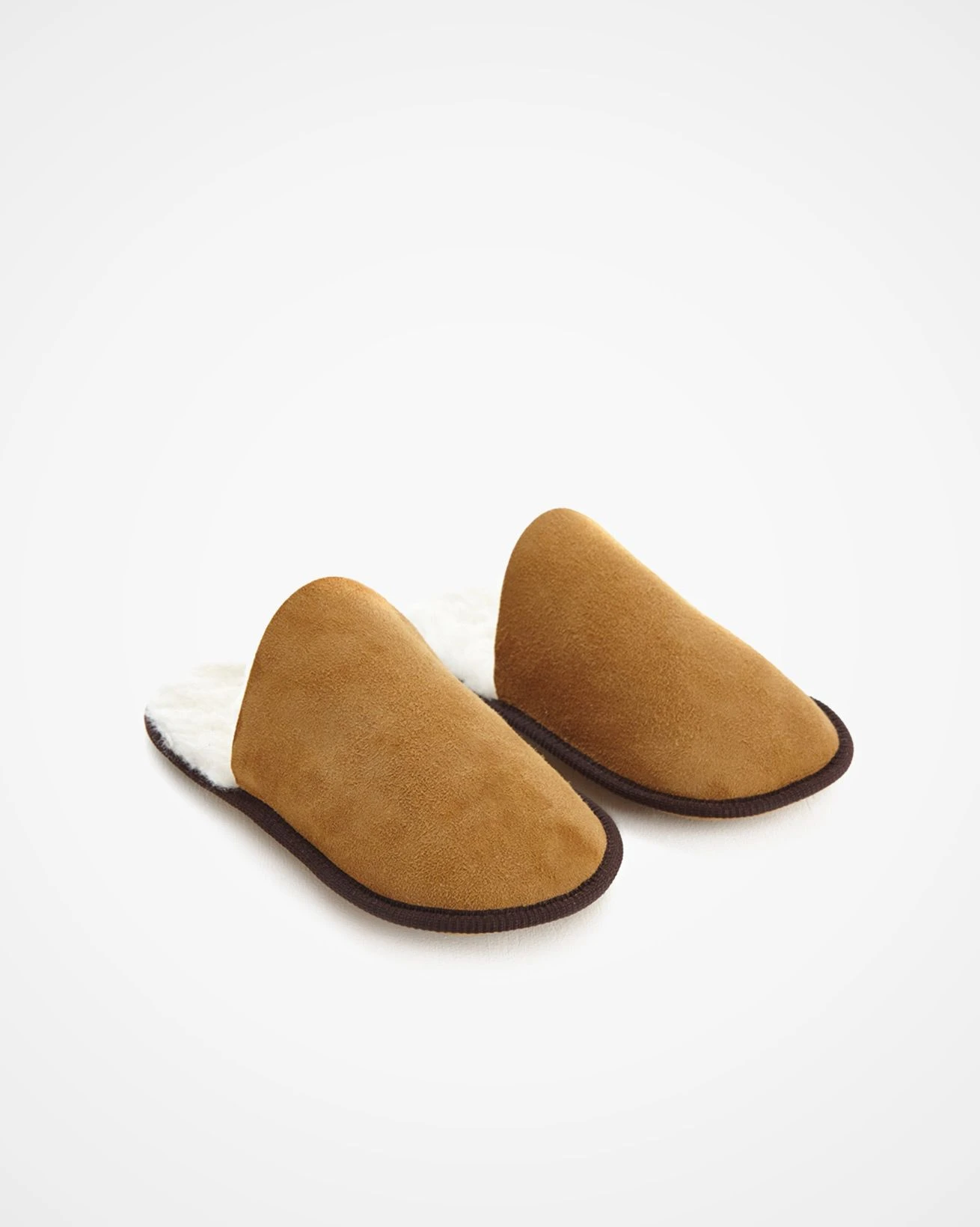 100% shearling construction delivers guaranteed quality, while the super-soft sole is flexible underfoot. Choose from warm spice or dapper mocca to suit your tastes.