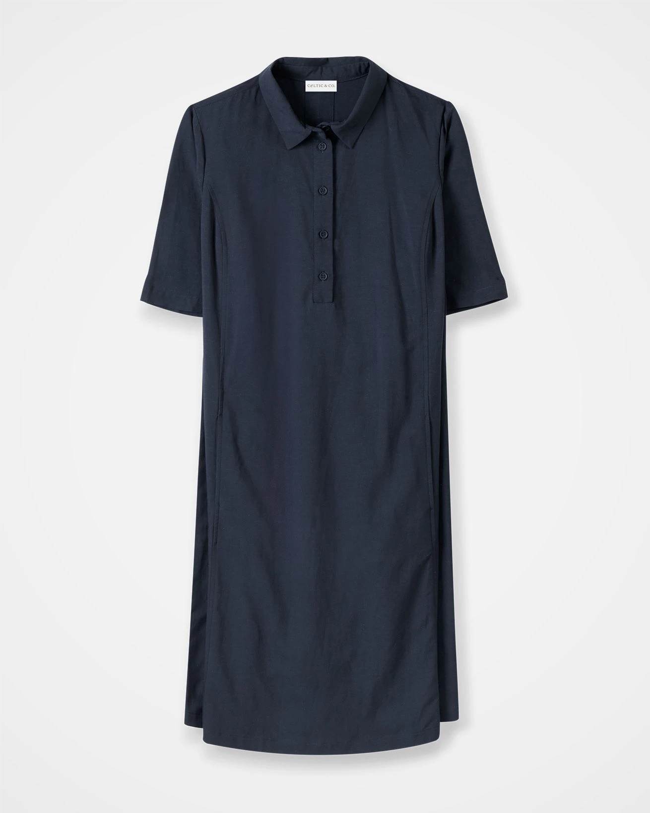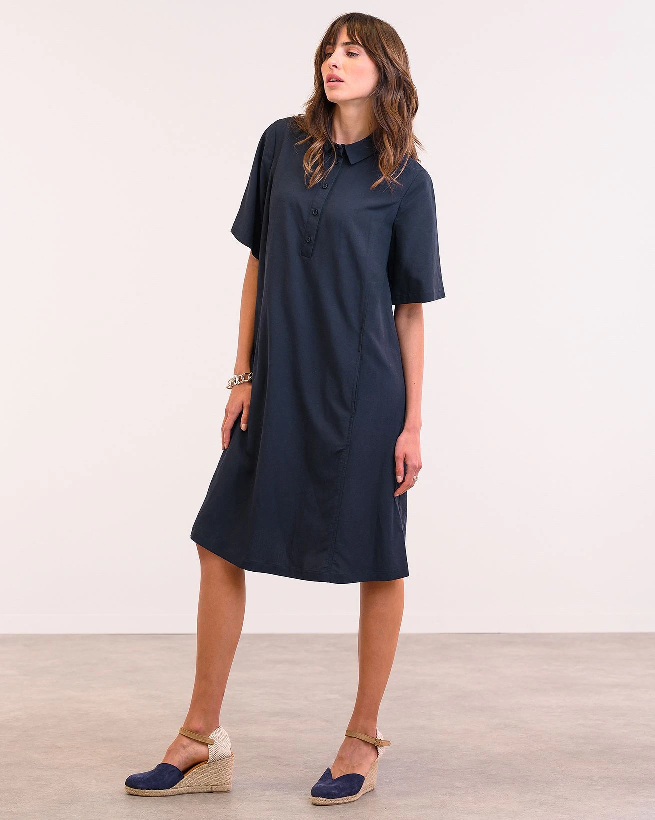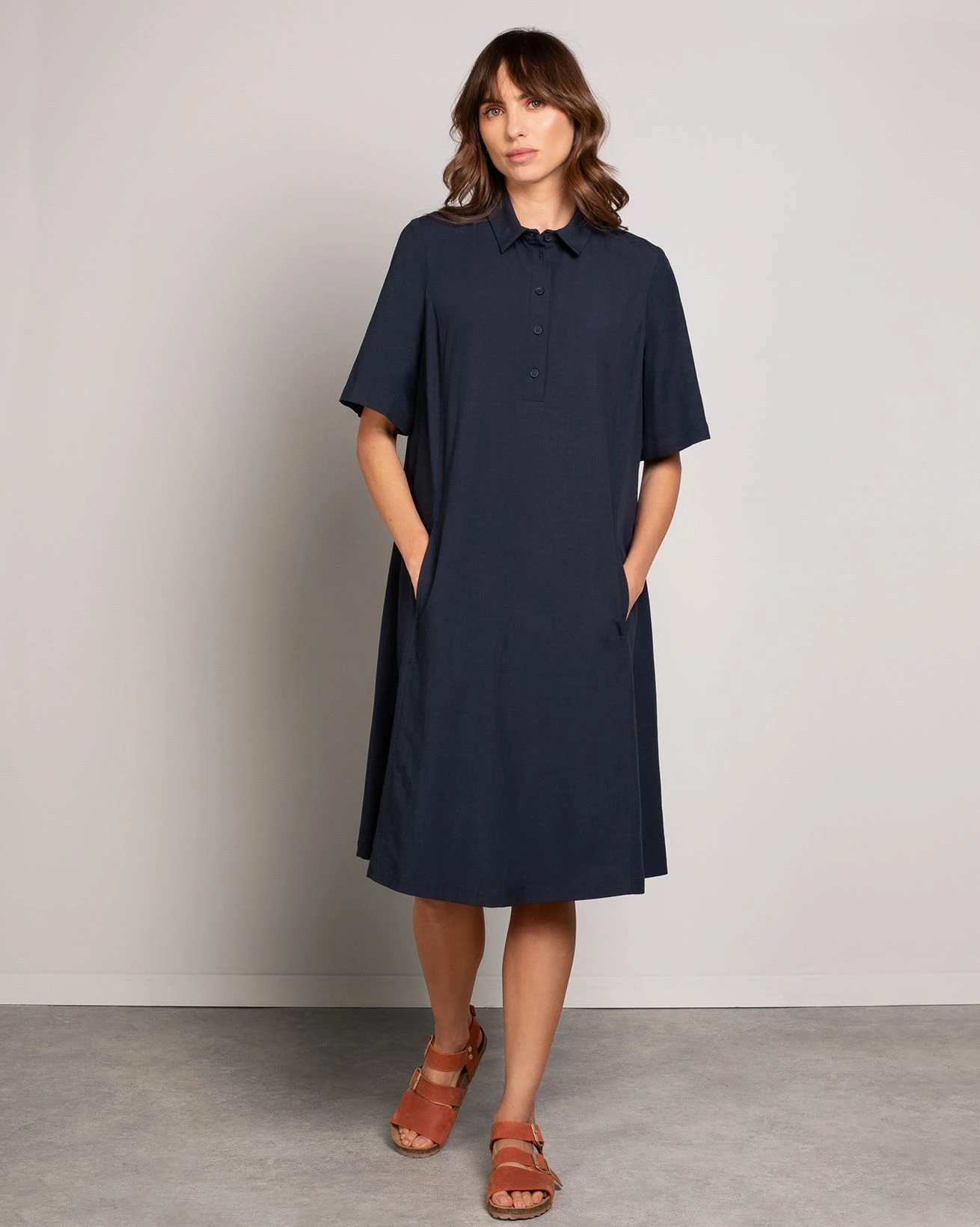 With a collared neckline and flattering swing shape, this dress is designed for effortless style. The half-length sleeves provide added comfort, while the blend of viscose and linen ensures a soft feel, perfect for both casual wear or occasions.