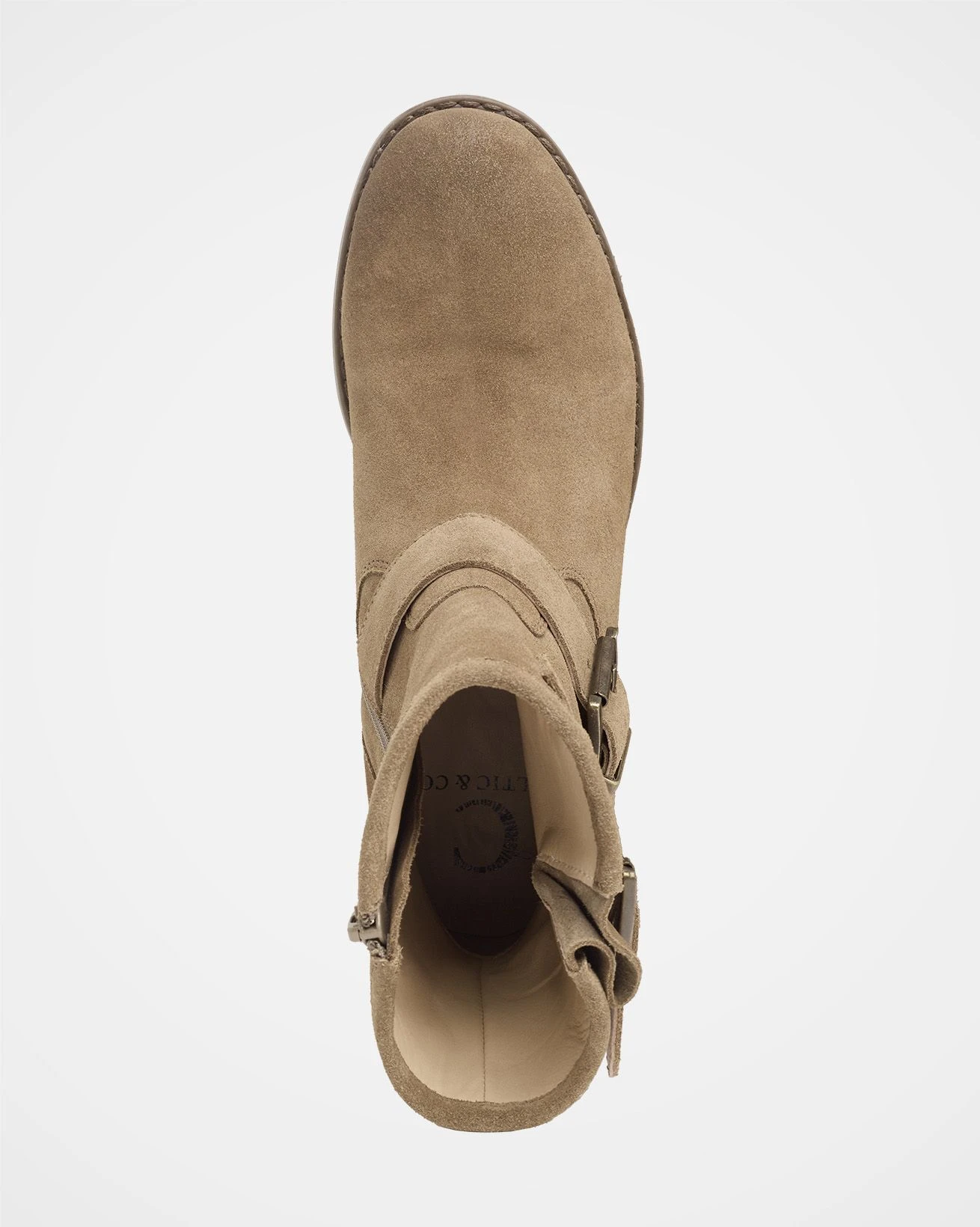 - High ankle length with strap and buckle detail