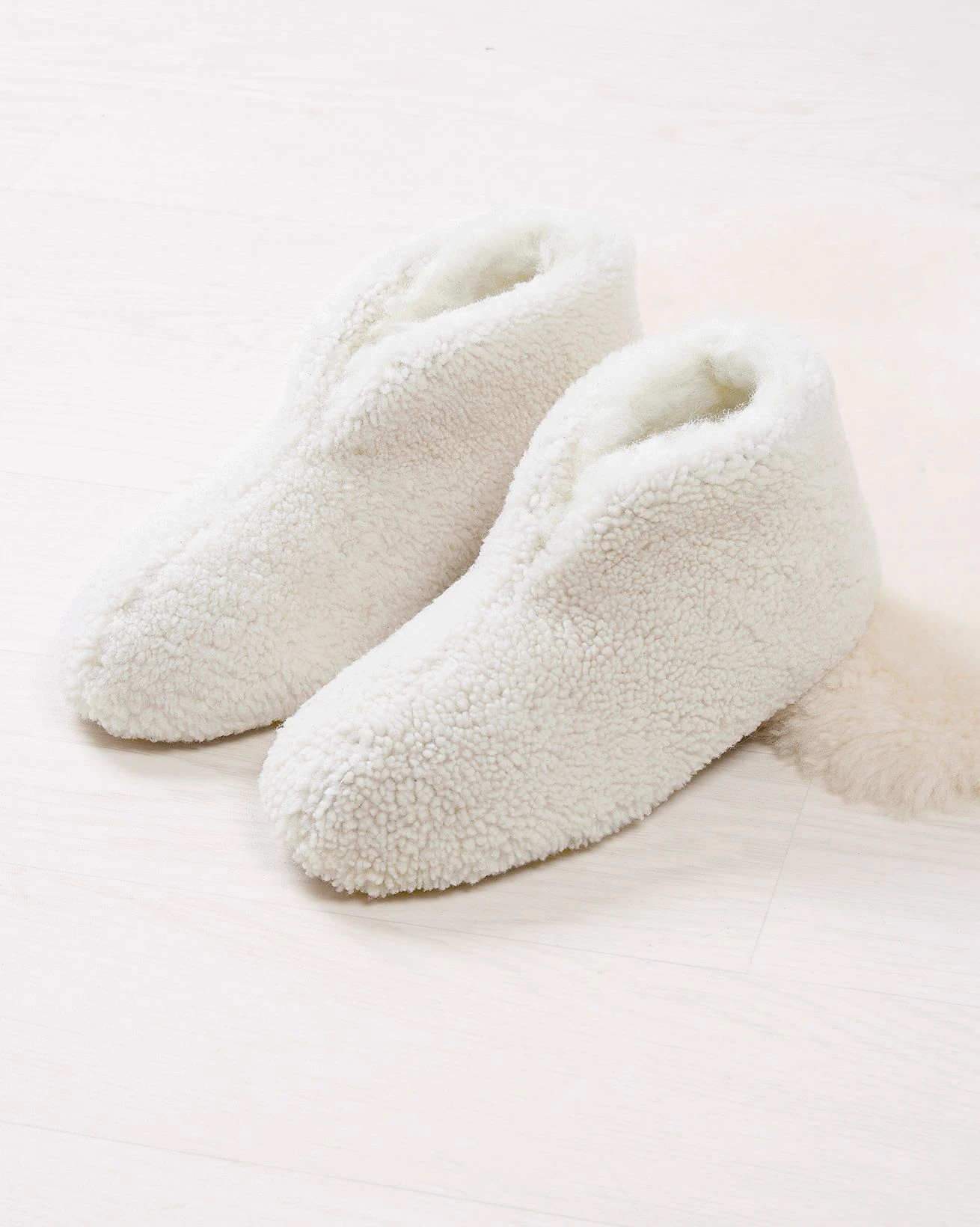 Indulge in warmth and comfort with our Teddy Shearling Soft Sole Bootee Slipper. This bootee slipper boasts a soft sole with a curly wool Merino shearling upper and lining in 100% wool fleece. The sole material is leather, ensuring both warmth and a cosy feel. Made in our Newquay factory, this slipper is perfect for relaxing at home.