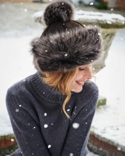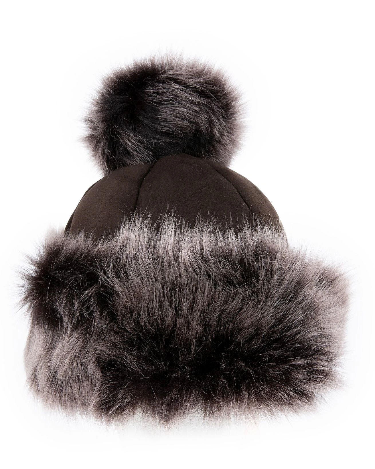 Styled with a sheepskin cuff that frames the face elegantly, this design is topped with a bouncy pompom to give it acres of playful character.Â